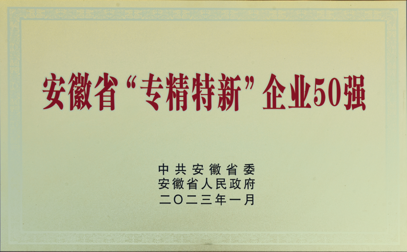 國家級(jí)專精特新重點(diǎn)“小巨人”企業(yè)、國家級(jí)高新技術(shù)企業(yè)、安徽省“專精特新”企業(yè)50強(qiáng)